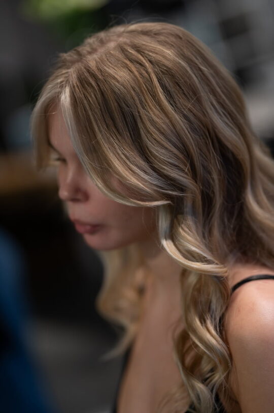 Sombre, czyli delikatniejsze przejście między kolorami, może być świetnym rozwiązaniem dla osób, które chcą uzyskać naturalny efekt optycznego zagęszczenia. W połączeniu z naszą autorską metodą Eksttra Glow, sombre może jeszcze bardziej podkreślić naturalną teksturę włosów, nadając im zdrowego wyglądu i lekkości. Cieniowanie koloru sprawia, że włosy nie wyglądają na płaskie, lecz nabierają struktury i głębi. Warto również rozważyć zastosowanie techniki babylights – bardzo subtelnych, cienkich pasemek, które w naturalny sposób rozświetlają fryzurę i nadają jej wizualnej gęstości. Połączenie różnych technik koloryzacji może dodatkowo uwydatnić objętość włosów i stworzyć efekt większej ilości pasm, bez potrzeby ich zagęszczania.